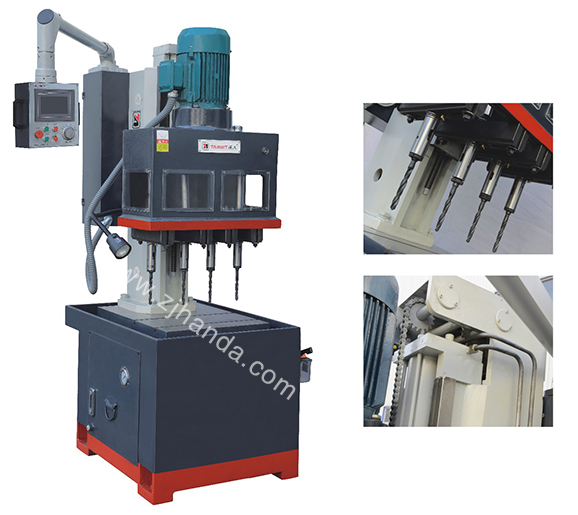 達人牌ZK5213X6A1立式多軸鉆床(采用多軸同步加工),是我公司匯集國內(nèi)外多軸鉆床研制開發(fā)推出的第二代全自動立式可調(diào)多軸鉆床,獲得5項專利,120項技術(shù)改進,20000小時的樣機試驗。最多可同時鉆6個孔,鉆孔范圍¢3-¢23,孔距可任意調(diào)整,也可根據(jù)客戶要求制作固定式多軸導(dǎo)板。切削HRC35以下黑色金屬,切削鑄鐵及有色金屬時更能發(fā)揮它的優(yōu)點,適應(yīng)于大批量零件加工。ZB5223*6A1立式多軸鉆床因其顯著提高工件加工效率、節(jié)省人力成本的特點,產(chǎn)品一經(jīng)推出,即引起熱烈的市場反應(yīng)。為您省力、省錢、省時,是達人多軸鉆床的使命!