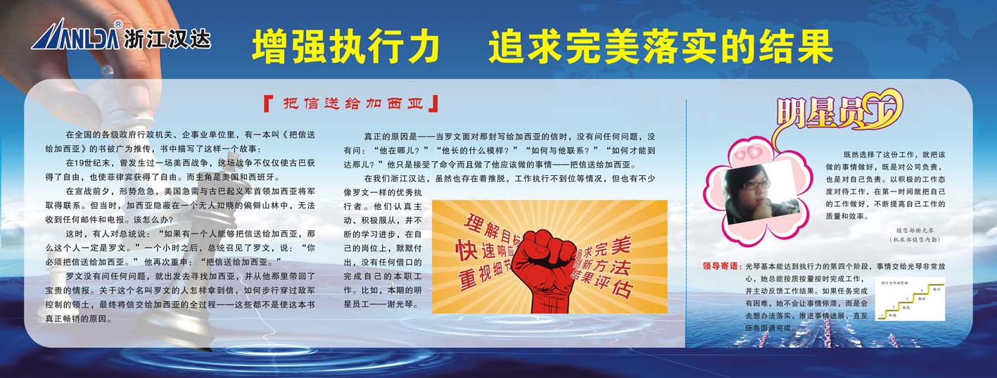 當(dāng)前位置:首頁>公司新聞>2013年5月黑板報(bào):增強(qiáng)執(zhí)行力 追求完美落實(shí)的結(jié)果