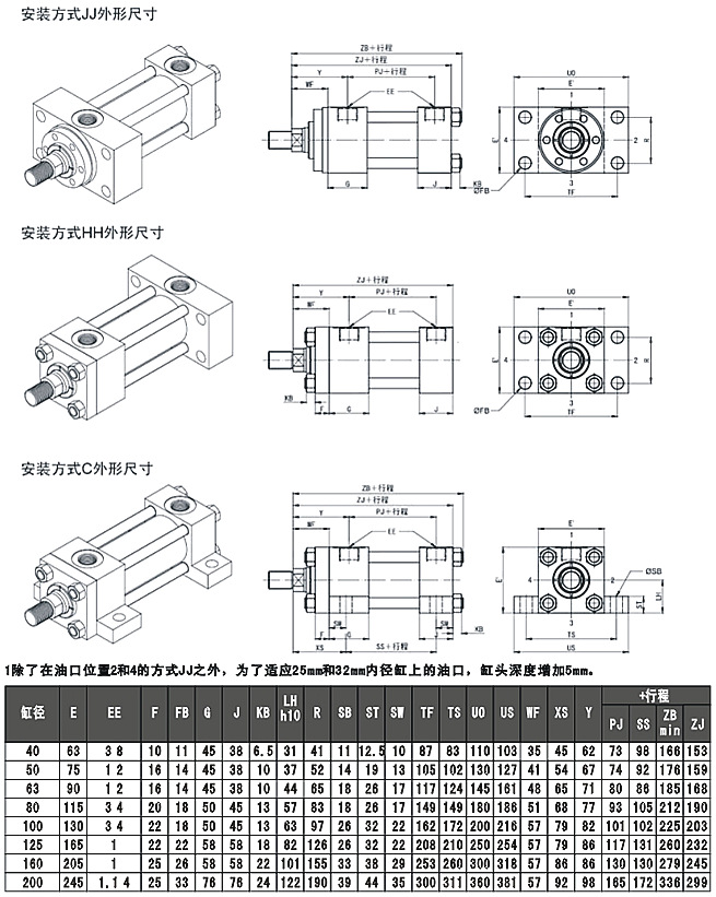 JJ\HH\C分別為JJ=前蓋矩形法蘭 HH=后蓋矩形法蘭 C=側面凸耳(C型座)